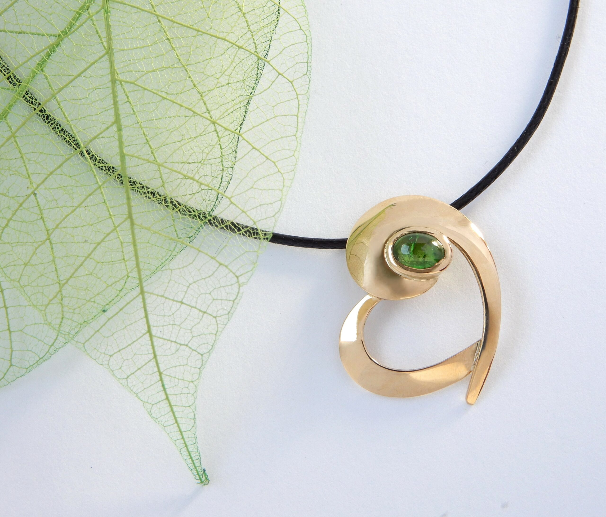 Pendentif cœur or grenat vert cabochon